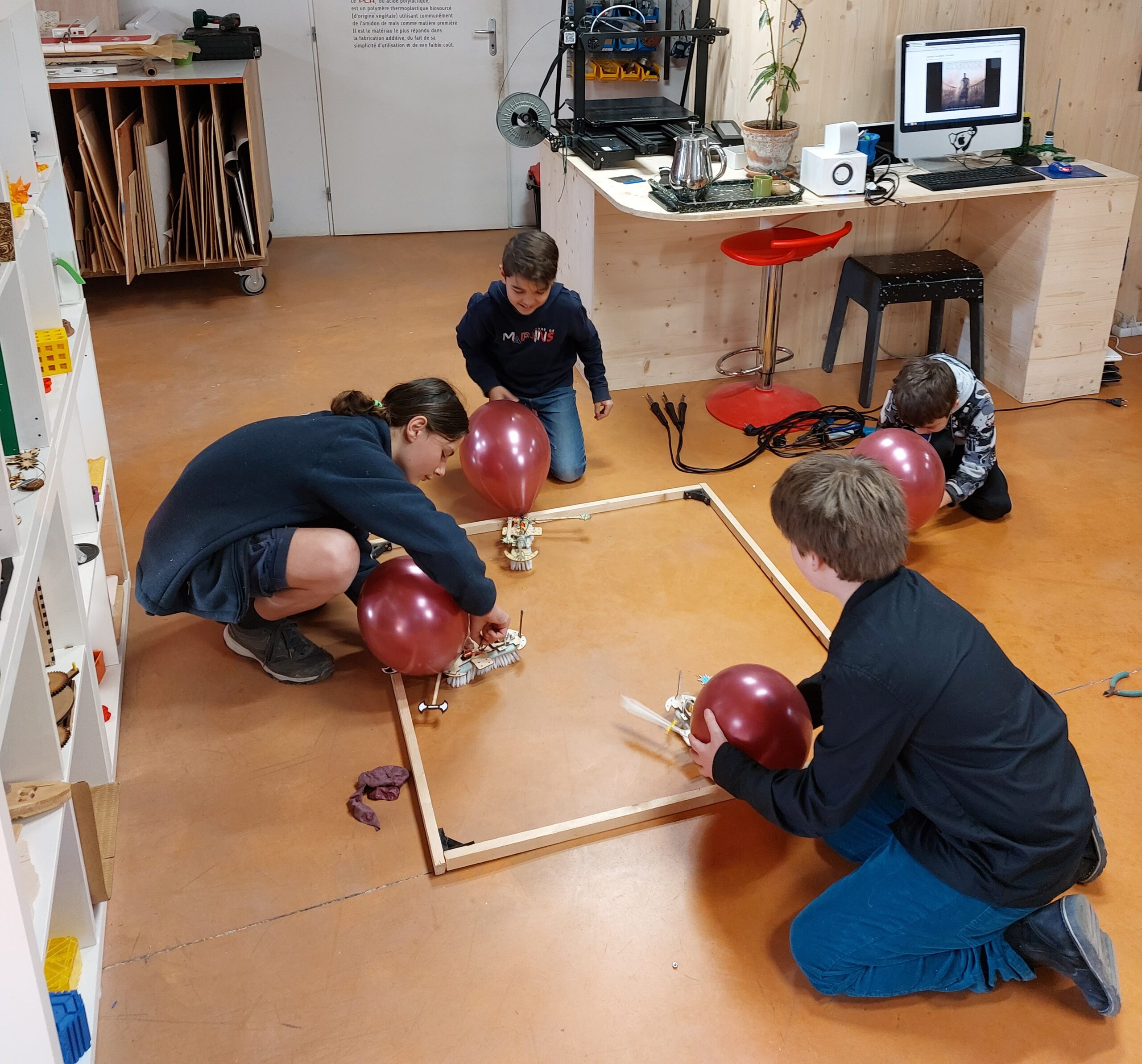 Un tournoi vient clore la séance, où chaque robot doit faire éclater les ballons fixés sur les robots de l’équipe adverse !