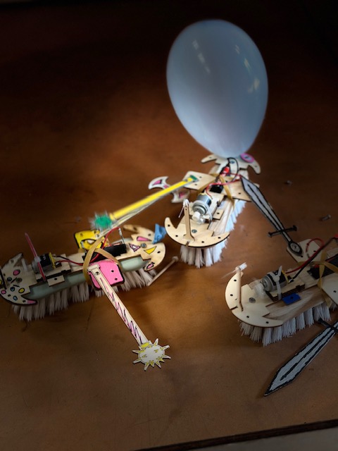 Un tournoi vient clore la séance, où chaque robot doit faire éclater les ballons fixés sur les robots de l’équipe adverse.